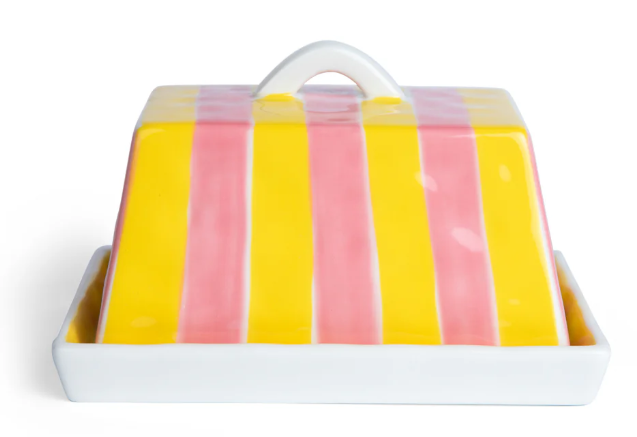 Butter dish - yellow & pink stripe